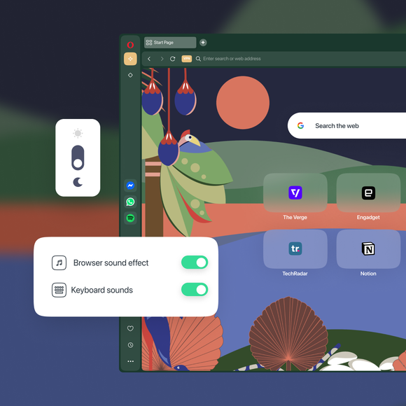 除了明暗模式,Opera 主题还能用动画、壁纸和声音改变你的浏览器。